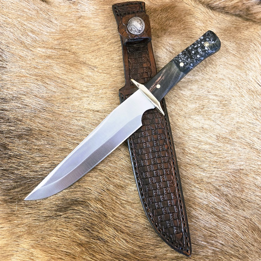 A Bowie knife is a large, fixed-blade sheath knife defined by a distinctive clip point, a sturdy cross guard, and a long, durable blade.